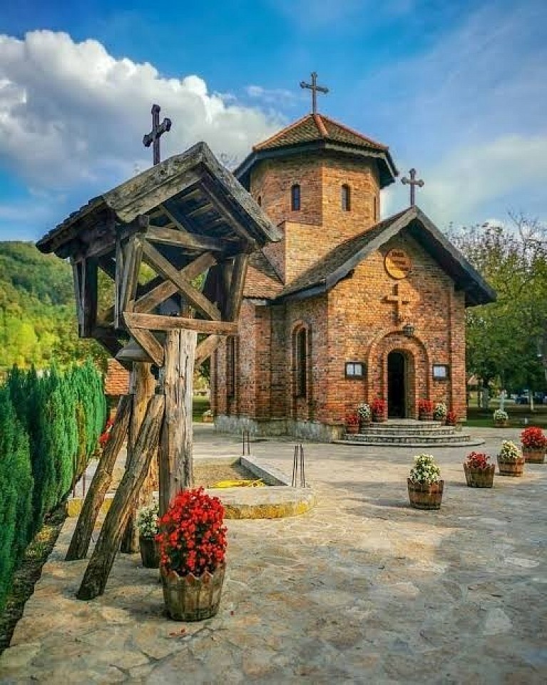 је рађен од природних материјала у предивној творевини Божијој, поред реке Дрине. Светиња посвећена Сретењу Господњем,